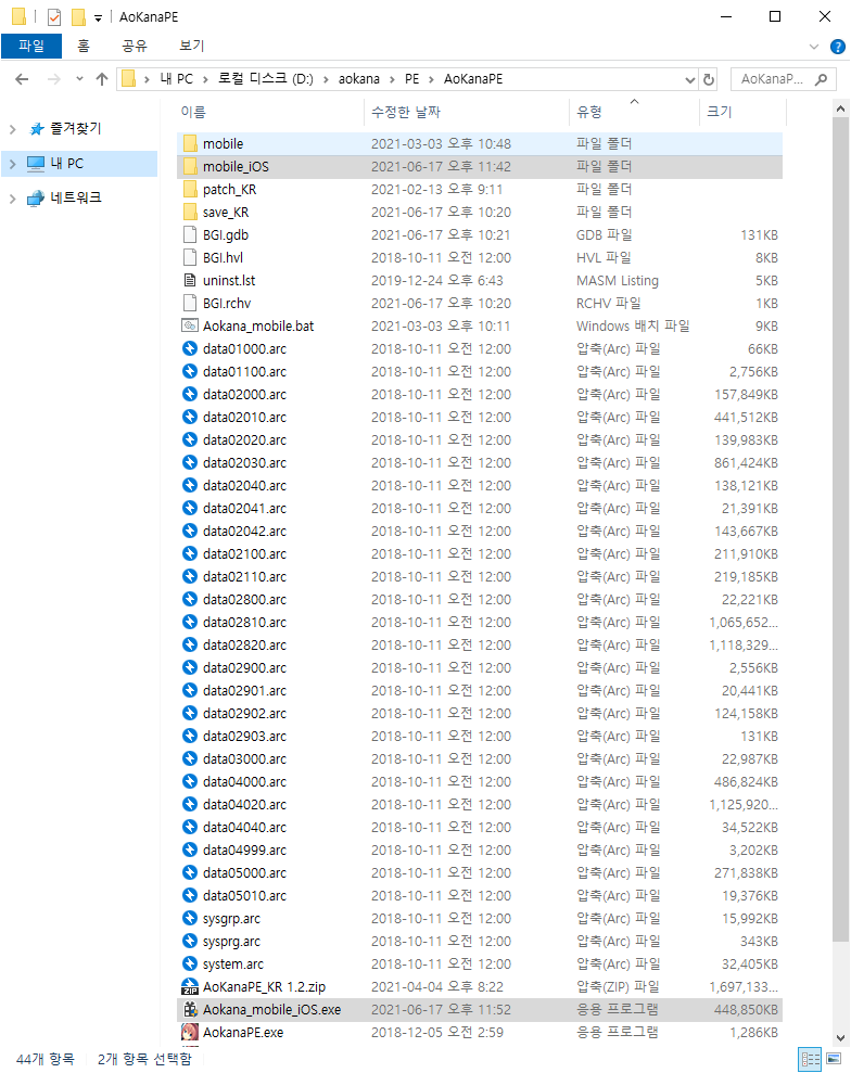 Aokana_mobile_iOS.exe를 실행해서 화면의 지시를 따라주시면 AokanaMobile_iOS라는 폴더가 생성됩니다.