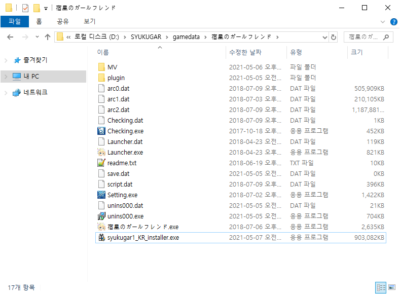 설치가 끝나고 새로 생성된 syukugar(1,2,3)_KR 폴더 안의 syukugar(1,2,3)_KR.exe를