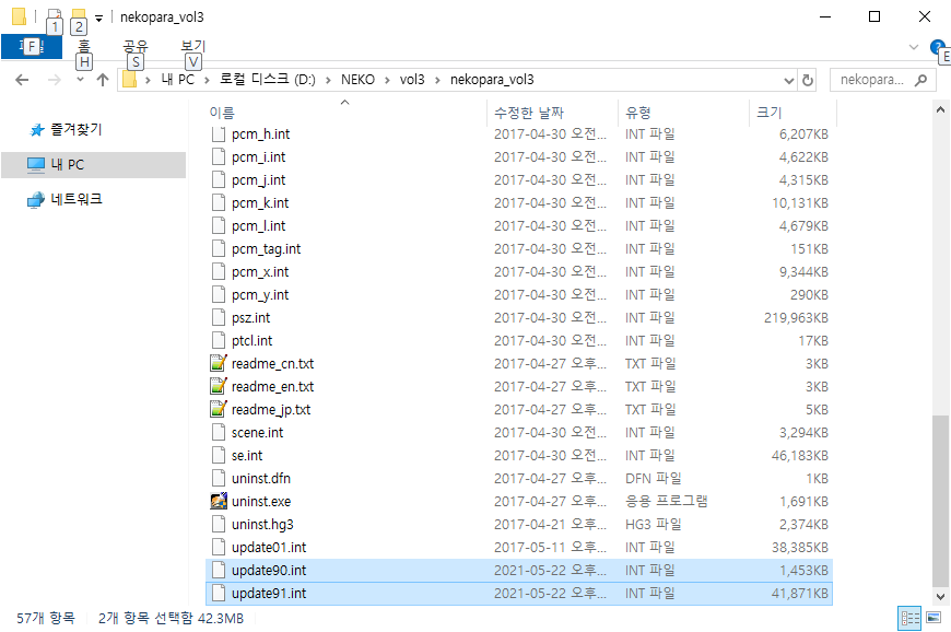 스팀용 네코파라의 경우 세이브파일 초기화가 필요합니다.