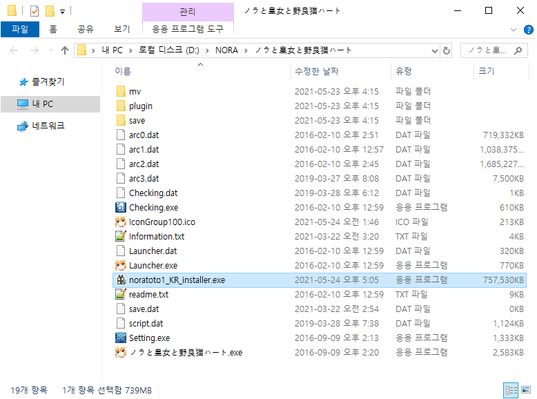 설치가 끝나고 새로 생성된 noratoto1_KR 폴더 안의 noratoto1_KR.exe를
