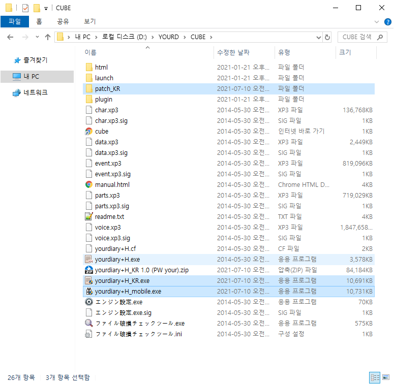 yourdiary+H_KR.exe를 실행하면 게임이 실행됩니다.