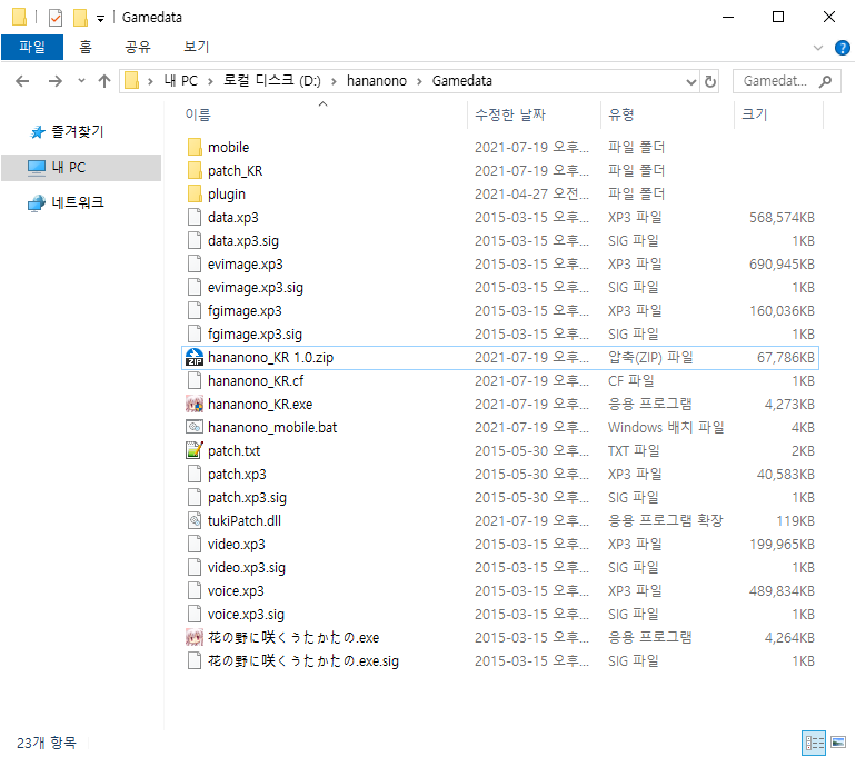 hananono_KR.exe를 실행하면 게임이 실행됩니다.