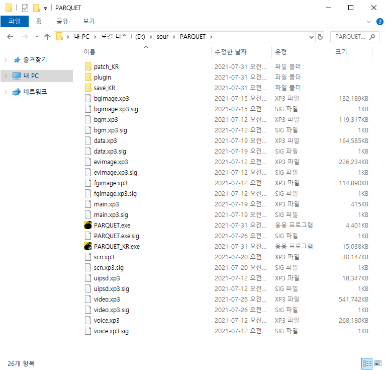 PARQUET_KR.exe를 실행하면 게임이 실행됩니다.