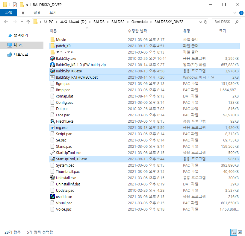 다음과 같이 Dive2 게임이 설치 되어있는 경로로 압축을 해제 해줍니다.
