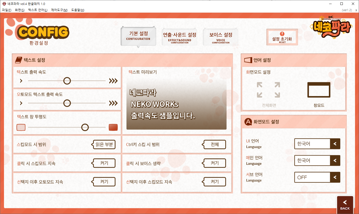 스팀용 네코파라의 경우 세이브파일 초기화가 필요합니다.