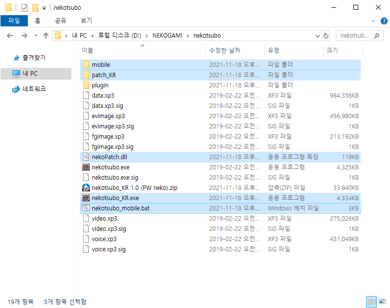 nekotsubo_KR.exe를 실행하면 게임이 실행됩니다.