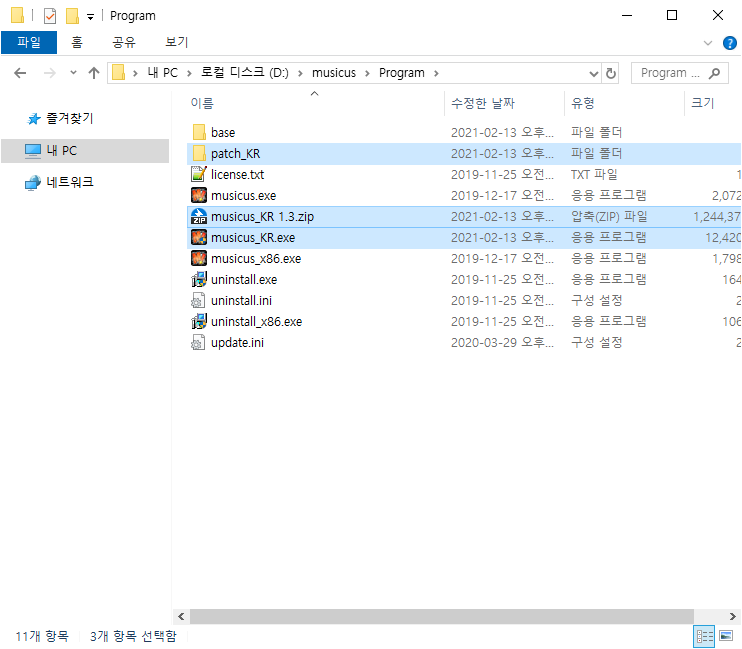 다음과 같이 Musicus! 설치 경로로 압축을 해제 해줍니다.
