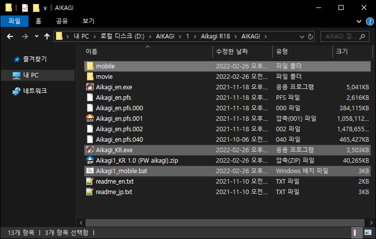 Aikagi1_mobile.bat을 실행하시면 Aikagi1Mobile 이라는 폴더가 생성됩니다.