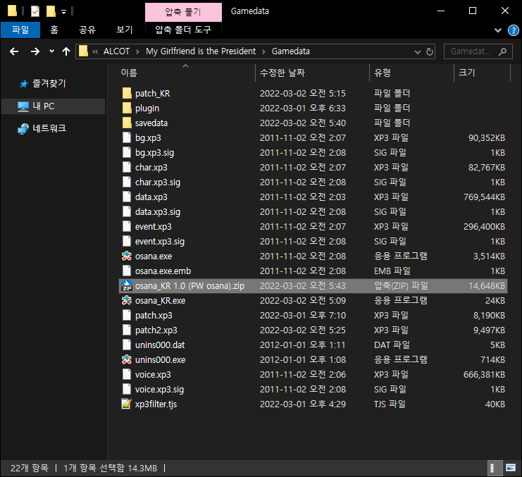 다음과 같이 게임이 설치 되어있는 경로로 압축을 해제 해줍니다.