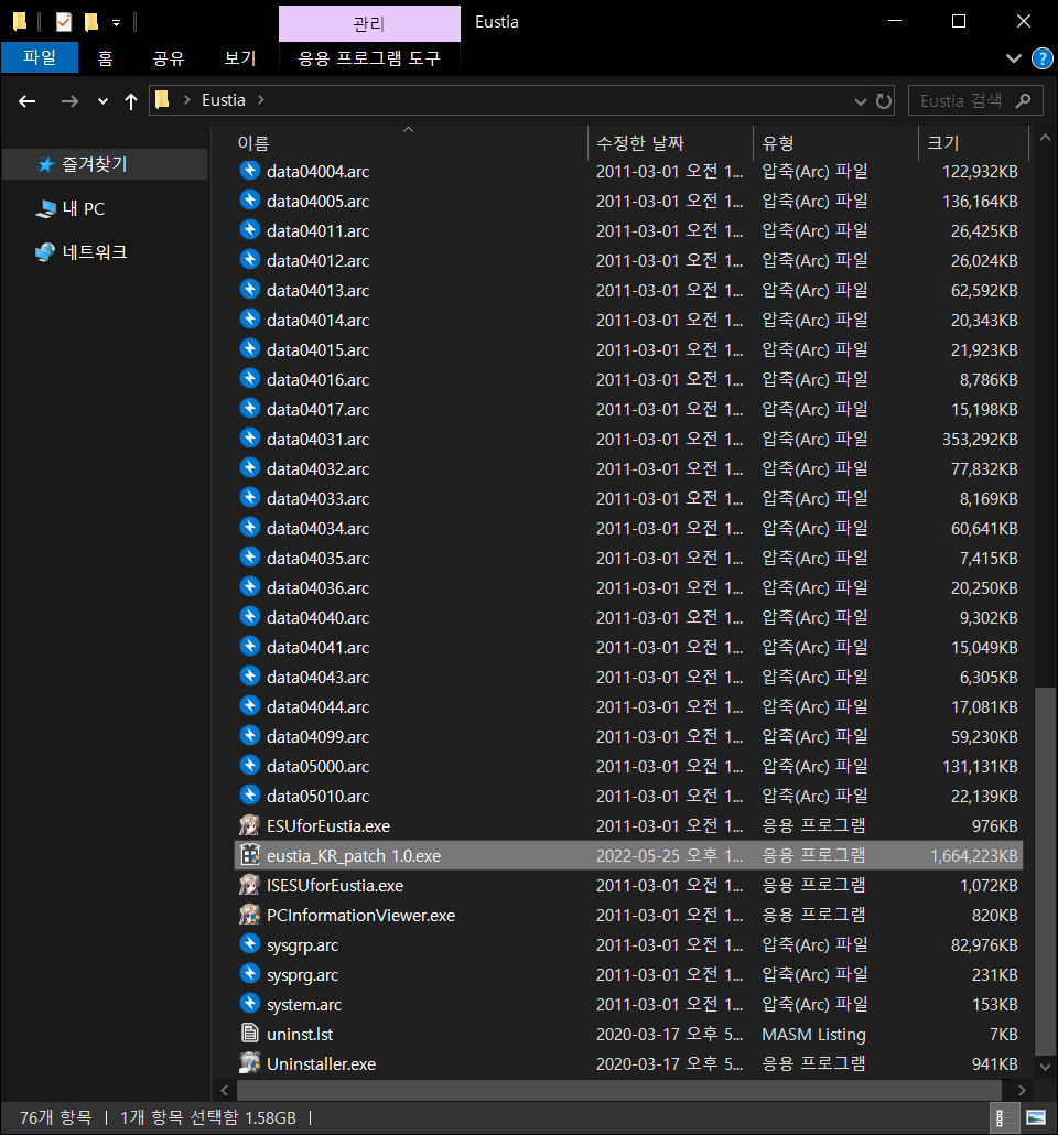 Eustia_KR 이라는 폴더가 새로 생성됩니다.