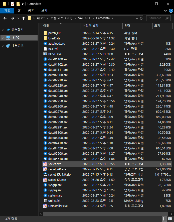 다음과 같이 게임이 설치 되어있는 경로로 압축을 해제 해줍니다.