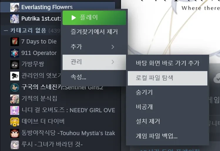 1. 상단 이미지와 같은 방법으로 게임이 설치된 폴더로 이동해 주세요.