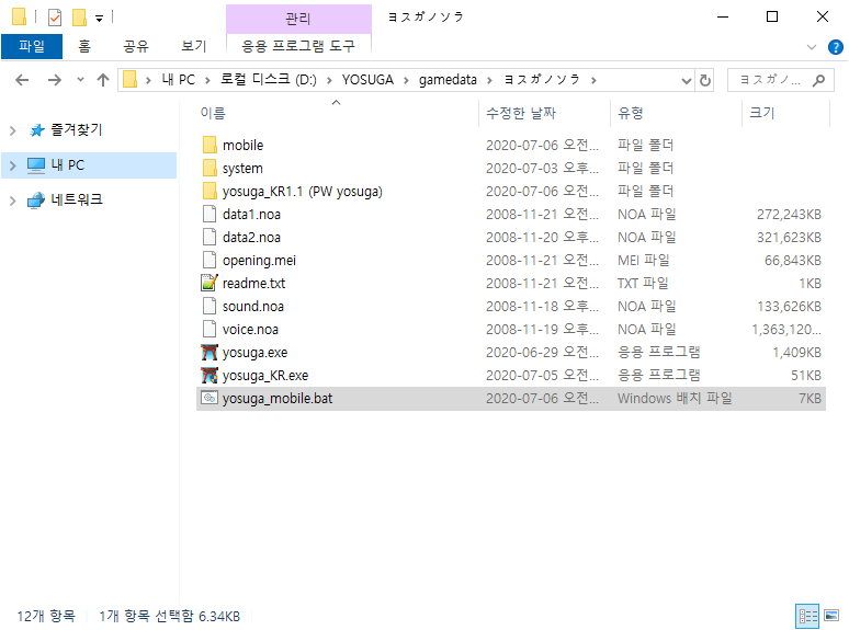 그리고 앱을 실행후에 YosugaMobile 경로로 찾아가서 선택을 눌러주시면 게임이 시작됩니다.