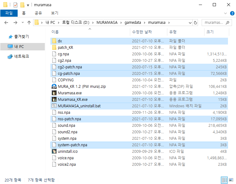 패치를 제거하시려면 MURAMASA_uninstall.bat 를 실행해 주시면 됩니다.