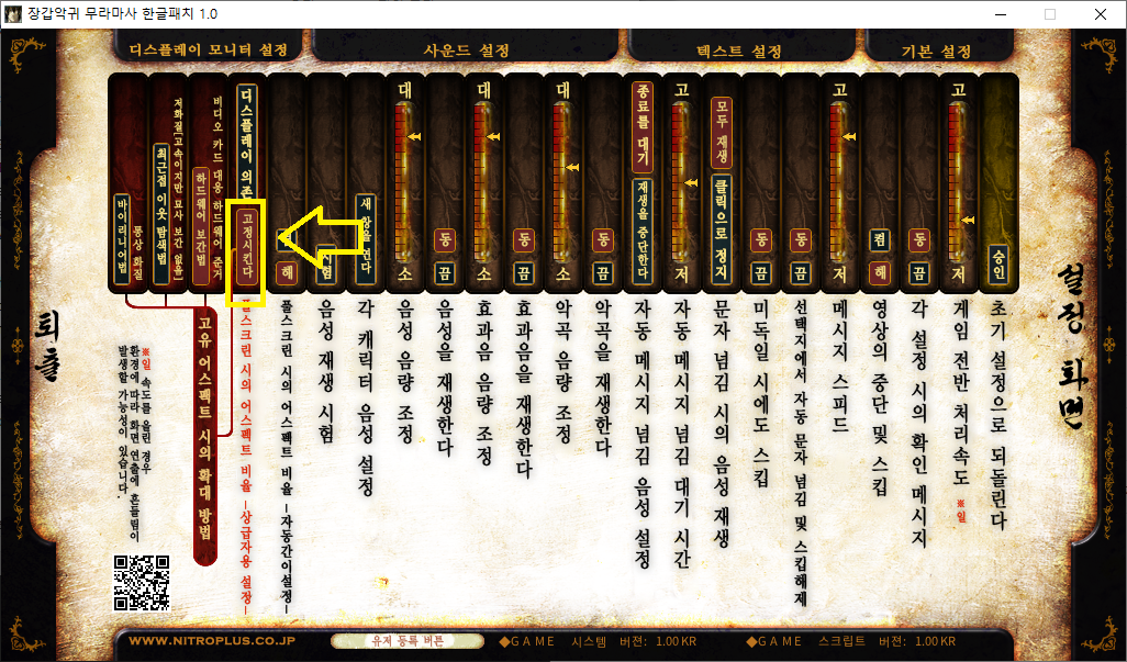 전체화면으로 게임하실거면 풀스크린 설정에서 고정시킨다 눌러주세요