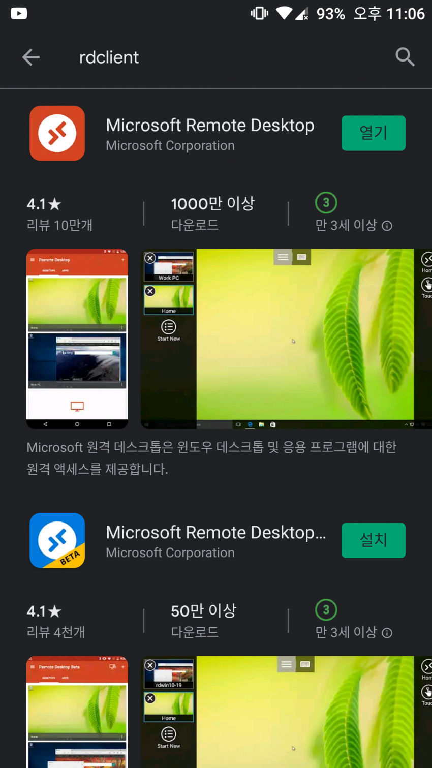 3. 플레이스토어든 앱스토어든가서 MS공식 앱인 RDclient를 받습니다.