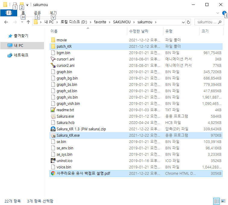 Sakura_KR.exe를 실행하시면 게임이 실행됩니다.