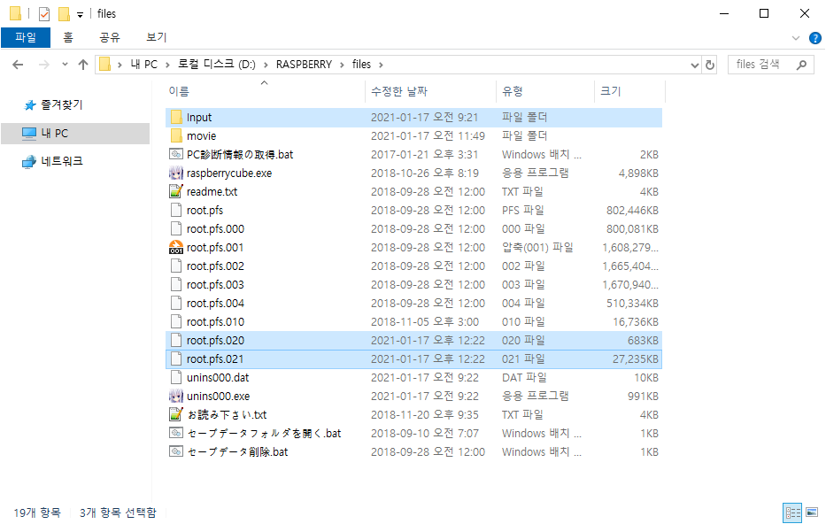 다음과 같이 라즈베리 큐브 게임이 설치 되어있는 경로로 압축을 해제 해줍니다.